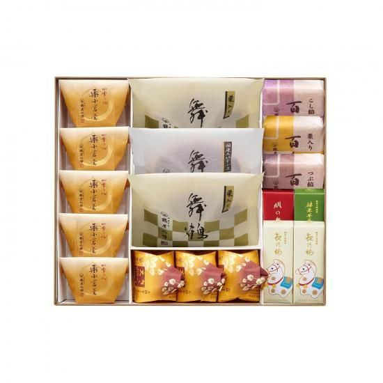商品内容 さつま大納言3個、栗小倉羹5個、舞鶴3個(栗入り2個、つぶ餡1個)、百楽3個(栗入り1個、つぶ餡1個、こし餡1個)、一口羊羹4本(夜の梅2本、明の春1本、抹茶羊羹1本)